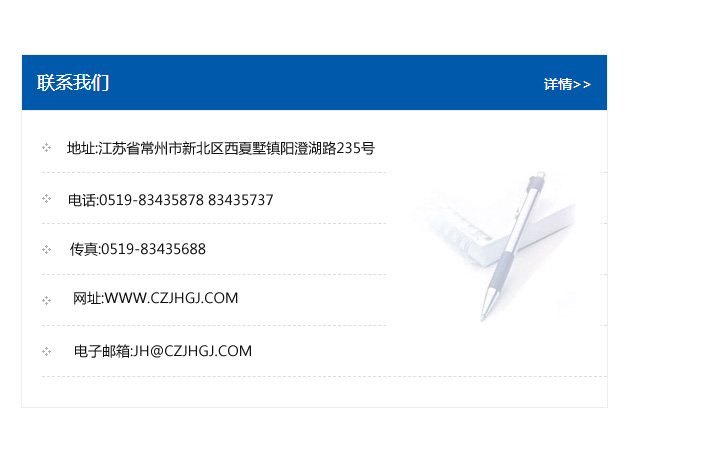 地址:常州市新北區友邦商務大廈1幢16、17層  電話:0519-85101652  傳真:0519-85112595  郵編:213022  網址:www_cz-jiayue_cn.fsjiada.com  郵箱:xiajifengaa@163.com